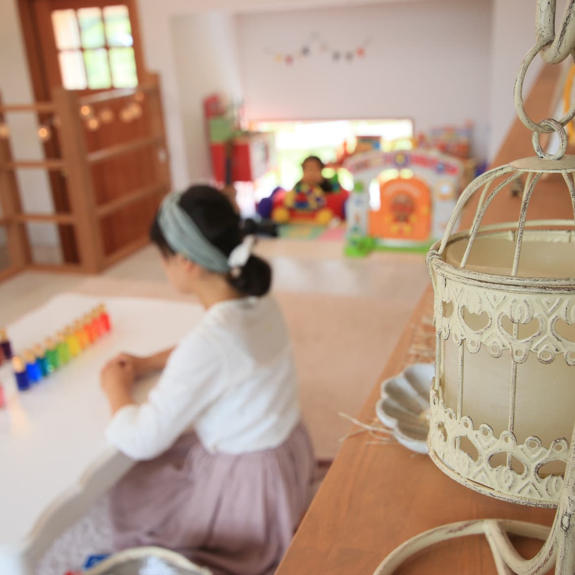 サロン内のキッズスペース横の書籍・キッズスペースにある絵本やおもちゃは自由にお使いください。